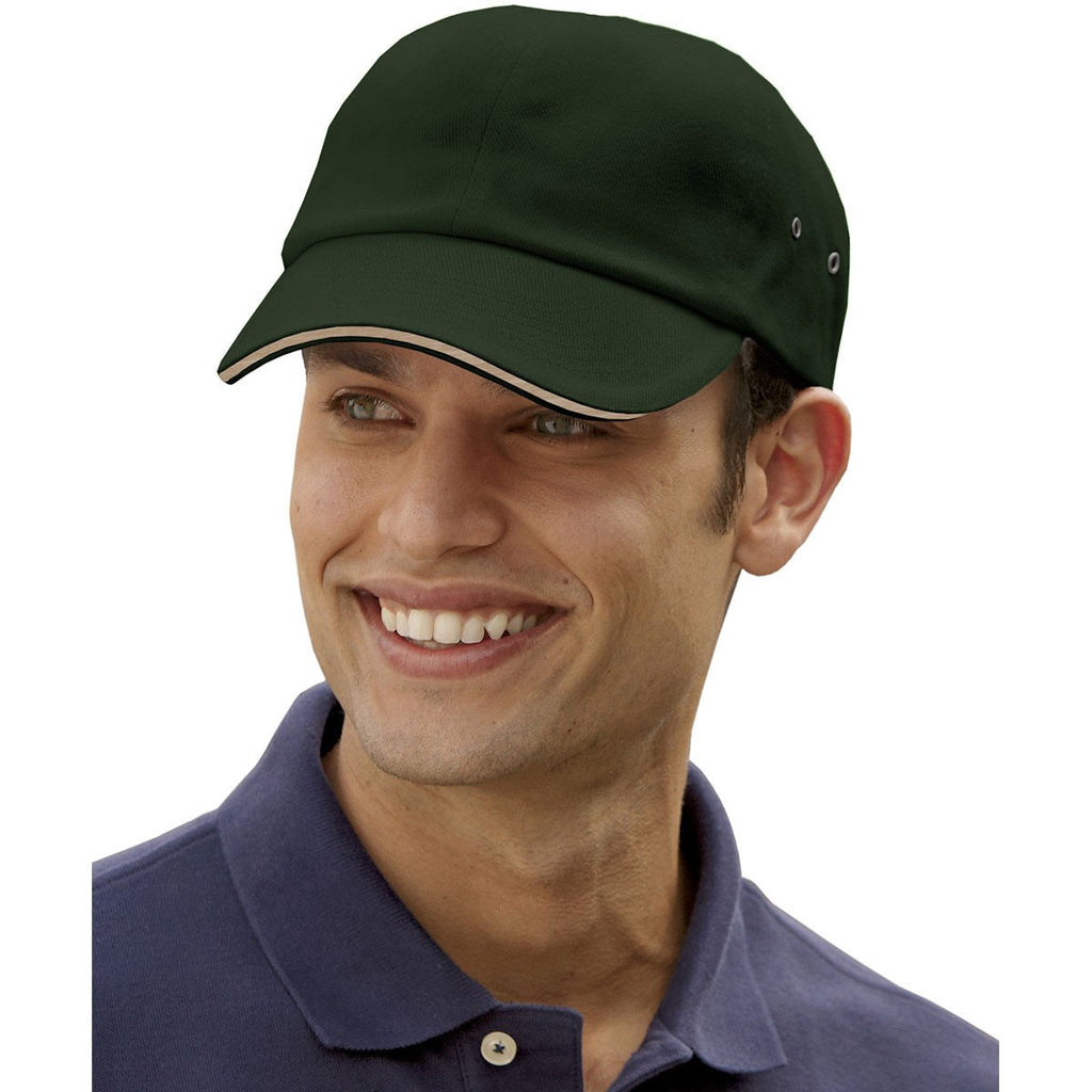 Adams Men's Forest/Khaki 6-Panel Low-Profile Ultra Heavyweight Brushed Twill Sandwich Cap