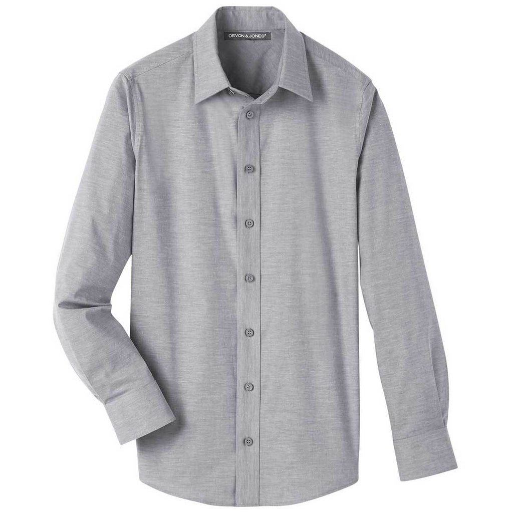 Devon & Jones Men's Graphite Crown Collection Stretch Pinpoint Chambray Shirt