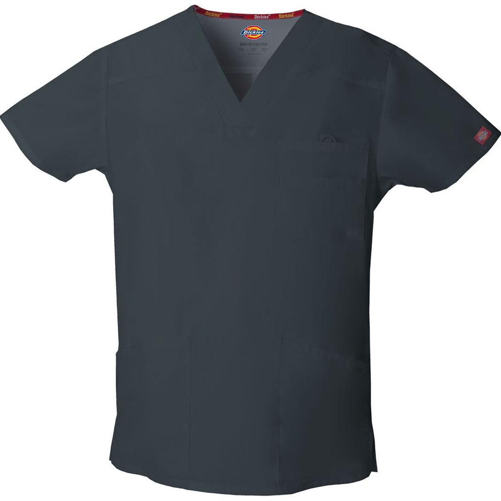 A phrase like looking gooddoesn't enter the mind of some people when they're working after all, typical work uniforms in areas like medical care aren't always the most flattering. Luckily, there are brands that take care to make sure that even the most serious of medical professionals can look good and professional while they do their work. This Dickies EDS Men's Pewter V-Neck Top is an example of an item that can provide you with everything you need to look good, feel comfortable, and still get plenty of work done. Add custom embroidery or printing to the front to brand these shirts to fit your company.Highlights