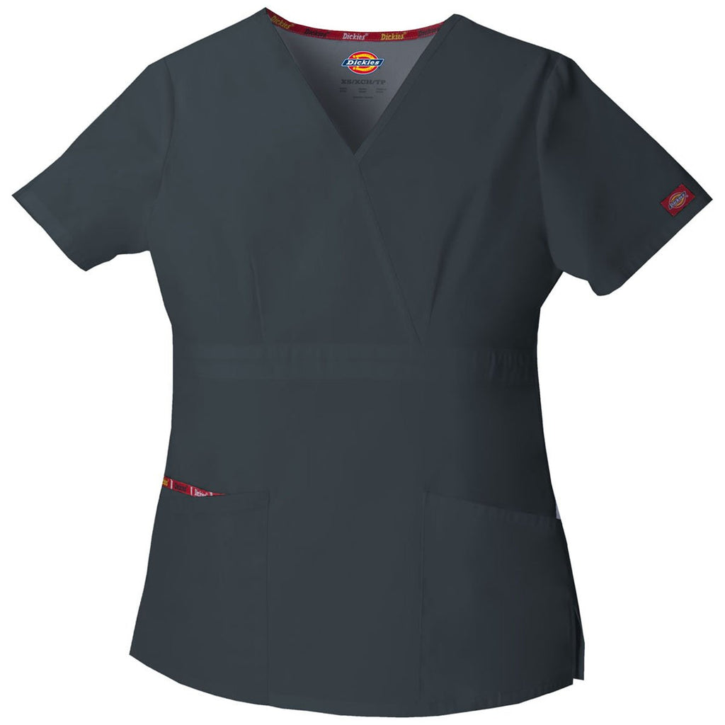 Contoured and attractive, you might think that the shape of this top looks like something out of fashion week but when you add the utility, the comfort, the durability, and the medical styling...you realize that this Dickies EDS Women's Pewter Mock Wrap Top is indeed created for health care professionals. But why not look good while staying comfortable and wearing a piece that helps you feel and work at your best? We say, it's important to feel good in what you wear, particularly when it comes to the work wear that you have to don for a significant portion of your adult life.