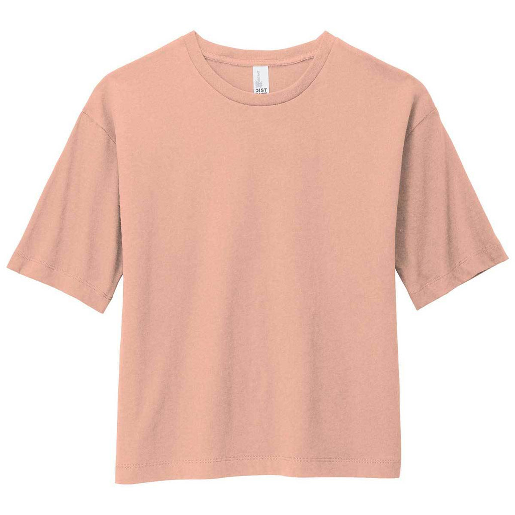 Be bold in a screen print District Women's Dusty Peach V.I.T. Boxy Tee. The perfect custom tee to dress up or down depending on your needs, this 100% combed ring spun cotton, will carry your company logo with pride. Layer under a jacket or add a custom design to use this for a team event. The straight, boxier fit offers longer sleeves than the typical tee and a rib knit neck with tear away label. Whether you want to grab a favorite pair of jeans and spend the day with family or use this tee as part of a company uniform, this tee will deliver.Highlights