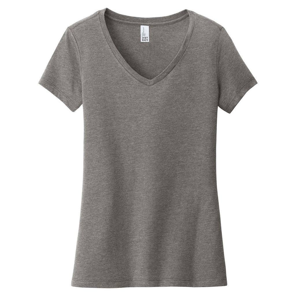 You do not need to wear a tux to feel very important, when you order the decorated District Women's Grey Frost Very Important Tee V-Neck. The fashionable short sleeve shirt features shoulder to shoulder taping that presents a professional appearance for job candidates attending recruiting events. Attach a custom logo to raise the bar for marketing products and services at industry trade shows. Super soft 100% ring spun combed cotton resists rips and tears to give you go to corporate apparel for years to come. The slightly slimmer body and shorter sleeves make the tee v-neck perfect for active outdoor enthusiasts.Highlights