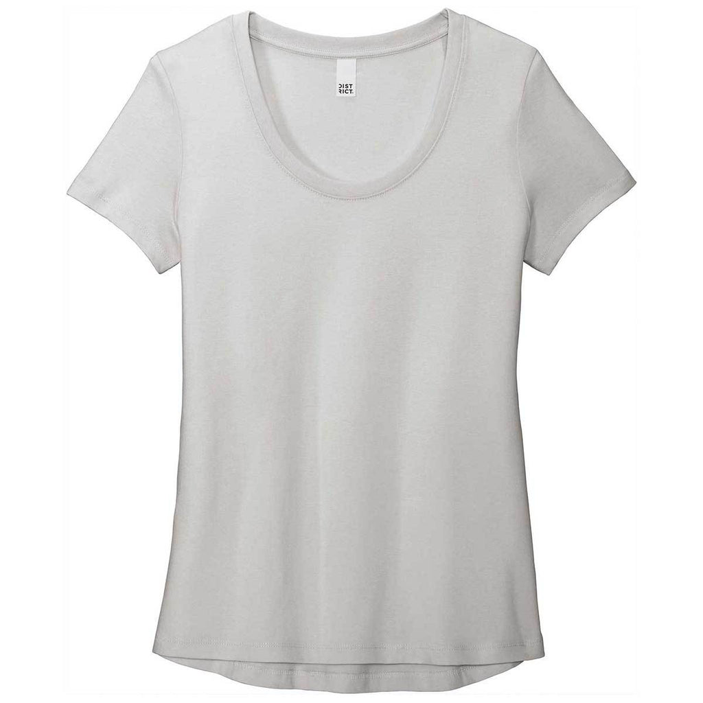 Be comfortable all day with a heat transfer District Women's Silver Mist Flex Scoop Neck Tee. With just a hint of stretch this traditional fitting scoopneck is a combination of combed ring spun cotton, poly, and spandex with a rib knit neck and slight high-low rounded hem. Add a company logo to offer these at trade shows or as employee gifts or add a corporate logo to use as employee uniforms or at team events. This tee is far from basic with the all day comfort that we all want and deserve. A variety of sizes and colors are available to choose from to meet your design needs.Corresponding Men's Style: District Men's Silver Mist Flex Tee
