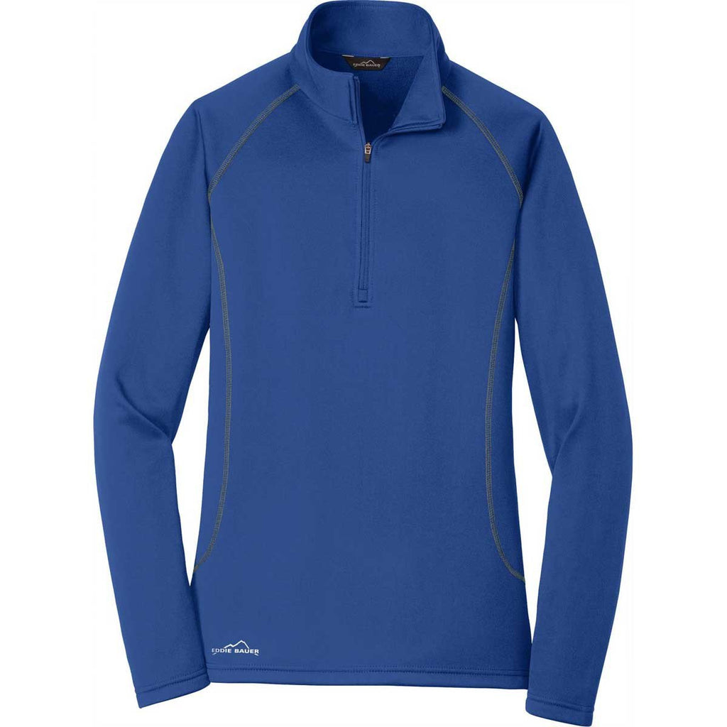 When the weather turns frightful, you want to wear layers of clothing to keep from the chill. As either an outer or a middle garment, the Eddie Bauer Ladies Cobalt Blue 1/2-Zip Base Layer Fleece also works as a solo fashion statement, as the 100% polyester fleece feels smooth against the skin. You can wear the fleece jacket outdoors or to after hour work engagements. Flat seam details enhance the appearance of an already sleek 1/2-zip fleece. Attach a custom logo to the large imprint area and hand out the base layer fleece jacket to loyal customers.Corresponding Men's Style:Eddie Bauer Men's Cobalt Blue 1/2-Zip Base Layer Fleece