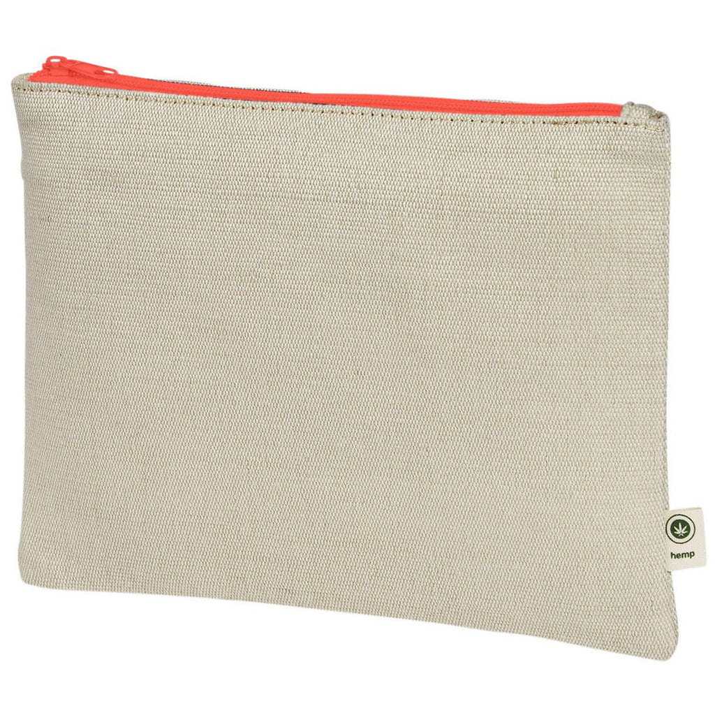 Create a unique customized item by getting your logo embroidered on the Econscious Natural/Orange Hemp Pouch. Made using all natural ingredients (hemp and cotton), the bag is a tactile and environmentally sustainable promotional item. Giving a custom logoed pouch is not only an expression of thankfulness but a gift that any end-user will find useful to keep trinkets, coins, cards, bills, keys organised and handy. A premium gift option for companies to give to those valued clients and business associates. Add your artwork to create a corporate gift with the perfect custom touch.