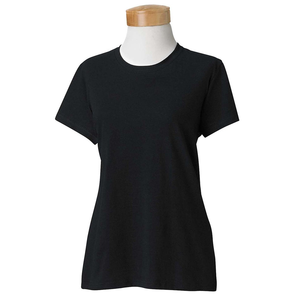 Make a lasting impression on the women that attend the next recruiting event by ordering the custom printed Gildan Women's Black 5.3 oz. T-Shirt. Cap sleeves designed for comfort make the short sleeve shirt ideal for wearing at corporate softball tournaments. Double needle stitching throughout the t-shirt resists rips and tears to deliver superior fashion performance during outdoor recreational activities. Screen print your company logo on the large area to separate your brand from the competition. Logoed corporate apparel represents powerful marketing tools that do not put much of a dent in the annual budget.Corresponding Men's Style: Gildan Men's Black 5.3 oz. T-Shirt