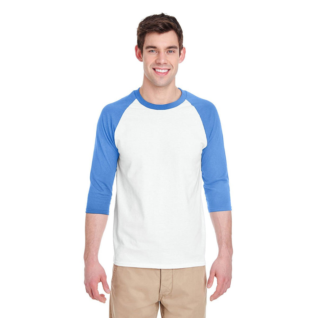 Gildan Men's White/Carolina Blue 5.3 oz. 3/4-Raglan Sleeve T-Shirt