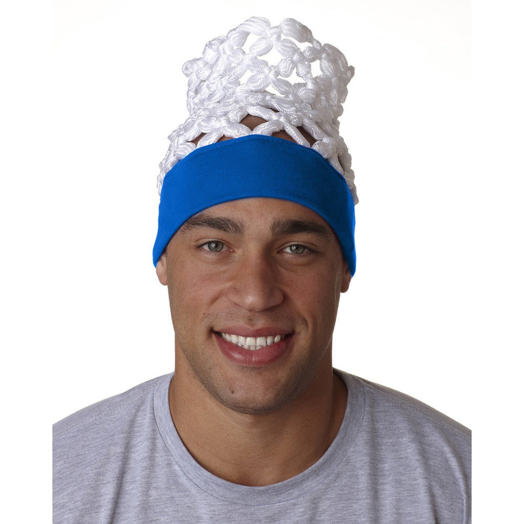 When you want to make a long lasting positive impression that surprises the members of your team, order the UltraClub Men's Royal Hoop Head. The outside of the box thinking corporate gift will attract the attention of everyone your employees meet. Turn the attention into sales by adding your corporate logo to the large imprint area. The unique headwear includes a sweatband that contains 95% cotton and 5% spandex to expand for different head sizes. Standard basketball hoop netting sits on top of the hat to create a unique fashionable appearance. The patented design means you will find a hat like this only at UltraClub.Highlights
