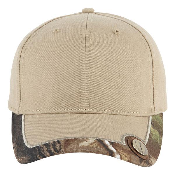 Enjoy sporting this Paramount Apparel Khaki/Realtree Xtra Green Brushed Cotton Twill Cap out in the wild with its fine embossed emblem featured on the bill. The cotton twill surface adds a smooth and solid color that lets your company's logo stand out perfectly. The camo accent on the front part of the bill blends in well too. The emblem matches up with the rest of the hat too. This is a striking design that people will want to wear at any unique hunting event, although this may also work well for when you are looking to promote special offers and products at your business.Highlights
