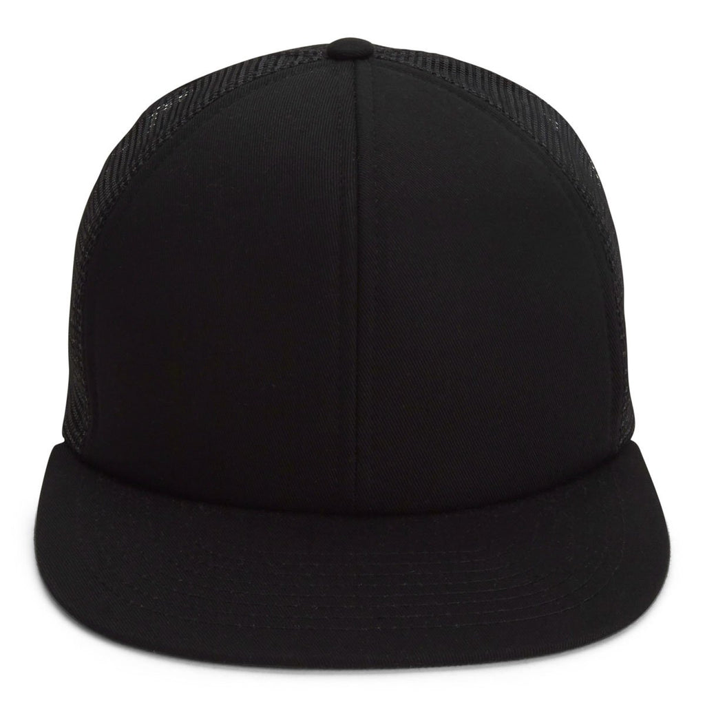 You don't have to spend hours on the road in some truck bed to enjoy wearing this Paramount Apparel Black Old School Trucker Cap, although it might help. But in addition to being a nice gift to promote a trucking team, the cap also works well as a trendy accessory worth selling to people today. The hat has room for a custom logo on the front while the cotton twill and mesh body produces a lightweight tone. The flat visor includes a nice contrast stitching surface. You can fit this onto anyone thanks to the plastic snap closure on the back for anyone's convenience.