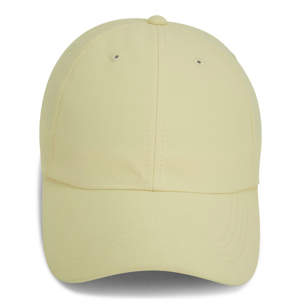 The Paramount Apparel Mellow Yellow Performance Cap has a poly micro jacquard surface that fits along the head quite well and makes the perfect canvas for your company's custom logo. The design adds a nice stitching accent along the bill while the sweatband keeps moisture from being a burden. This is a comfortable hat that works well in the summer months or as part of your corporate athletic team's uniform. You can order this as an athletic gift for anyone in the workplace who is regularly active and wants something cool to wear during a workout. The sturdy body will keep the hat from coming apart.Highlights