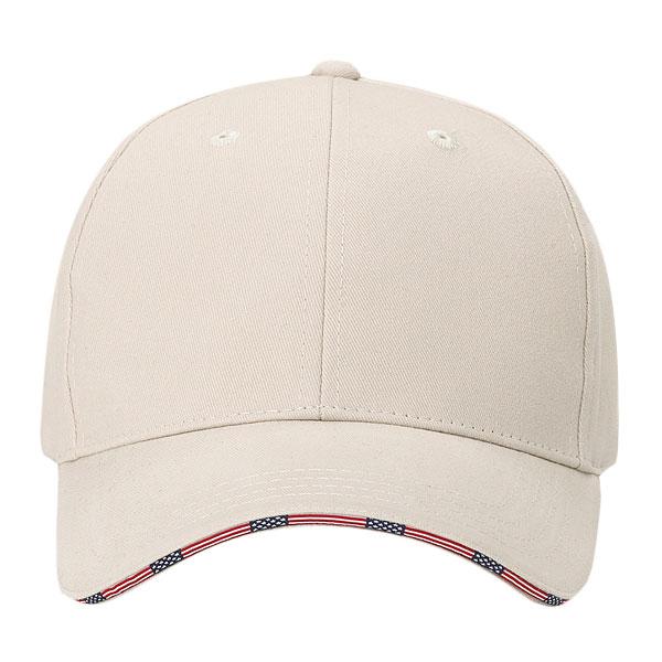 The American flag can be noticed on the end of the bill on this Paramount Apparel Stone Patriotic Sandwich Cap. See how the American flag pattern repeats on the end of the sandwich visor. The red, white and blue tones mix in well with a dark or light color on your cap. The front has enough room for a logo for your business, whether it entails a veterans-oriented group or a more traditional retail business. Show your love for the country during a promotional event or even as part of a company uniform. The buckle fastener on the back adds a nice surface too.Highlights