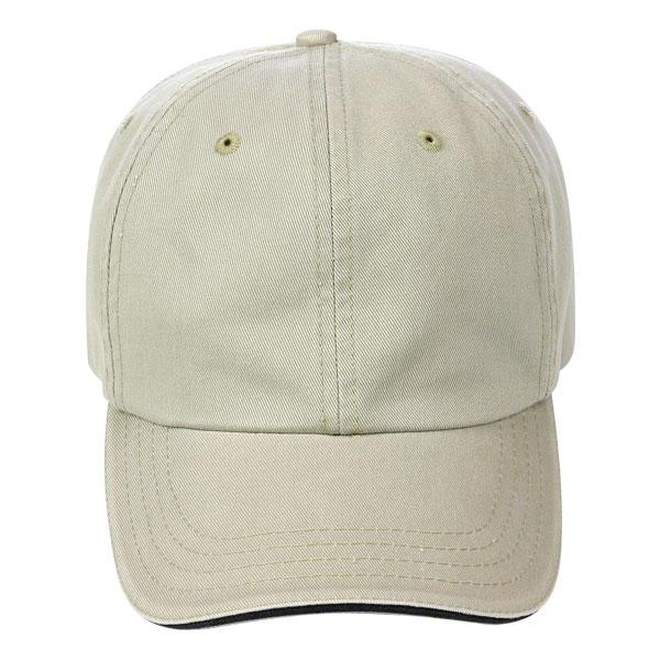 The Paramount Apparel Khaki/Black Contrasting Sandwich Visor Garment Washed Cap uses a sandwich visor that features a contrasting color that goes opposite the main color on this cotton twill hat. The added color effect produces a smooth and attractive surface that will complement your company's custom logo well. This hat is perfect as part of a company uniform, or use it as a marketing tool to spread the word about your brand outside of the office. Either way, this cap is a comfortable choice that your employees will appreciate.Highlights