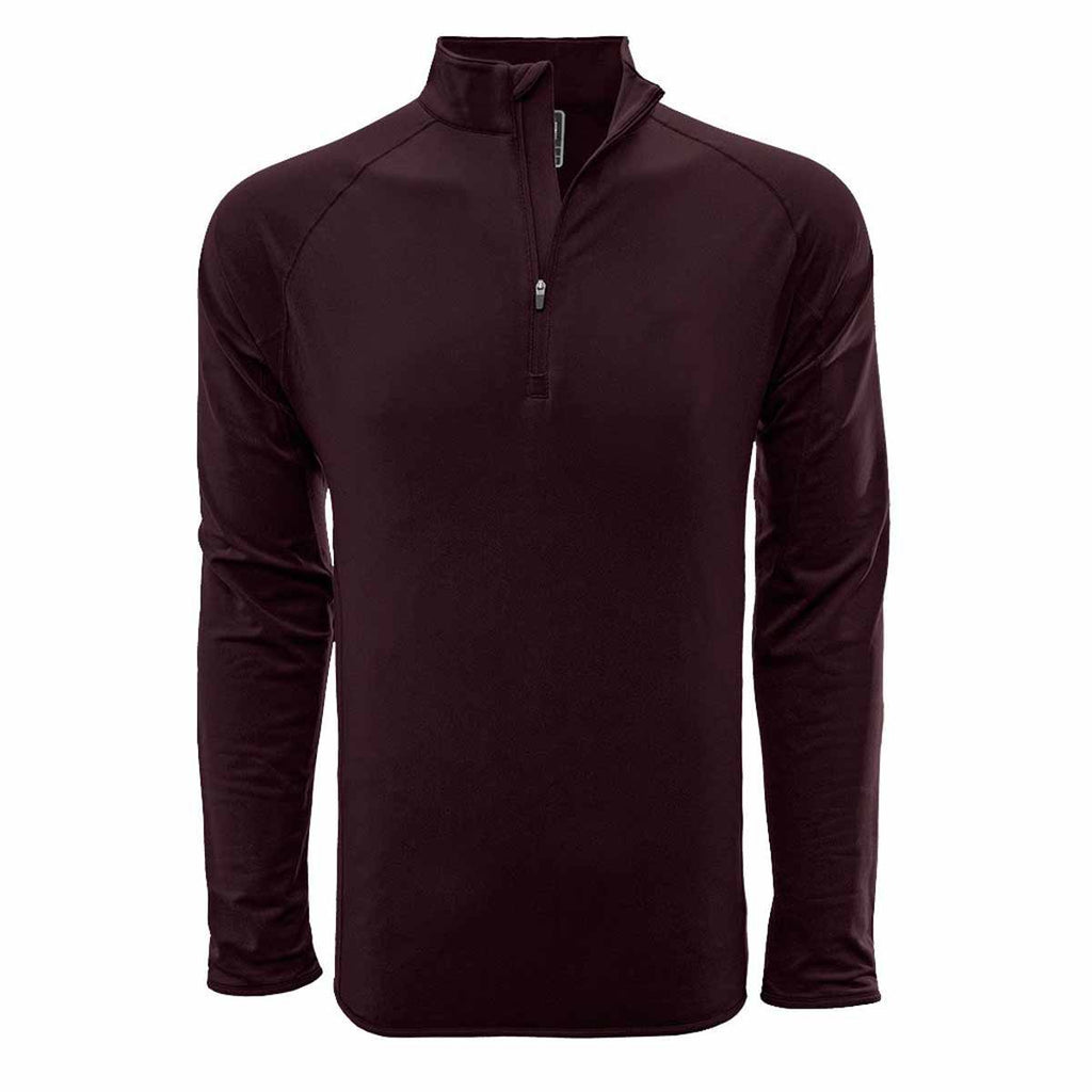 Blended polyester and spandex make the embroidered Levelwear Men's Maroon Metro Quarter Zip ideal for active professionals. The versatile quarter zip includes stretch knit fabric that increases your movement flexibility on a rugged backcountry trail. Raglan sleeves and under arm paneling create a sleek appearance that changes the outdoor active wear game. The brushed back fabric presents a visually appealing appearance that gets you noticed at outdoor corporate events. Leverage the notice paid to the fashionable quarter zip by adding your company logo on the large imprint area. With a custom logo, you expand your brand's presence in the community.Highlights