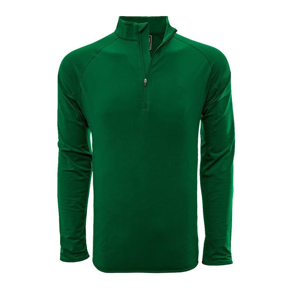 Blended polyester and spandex make the embroidered Levelwear Men's Rider Green Metro Quarter Zip ideal for active professionals. The versatile quarter zip includes stretch knit fabric that increases your movement flexibility on a rugged backcountry trail. Raglan sleeves and under arm paneling create a sleek appearance that changes the outdoor active wear game. The brushed back fabric presents a visually appealing appearance that gets you noticed at outdoor corporate events. Leverage the notice paid to the fashionable quarter zip by adding your company logo on the large imprint area. With a custom logo, you expand your brand s presence in the community.Highlights