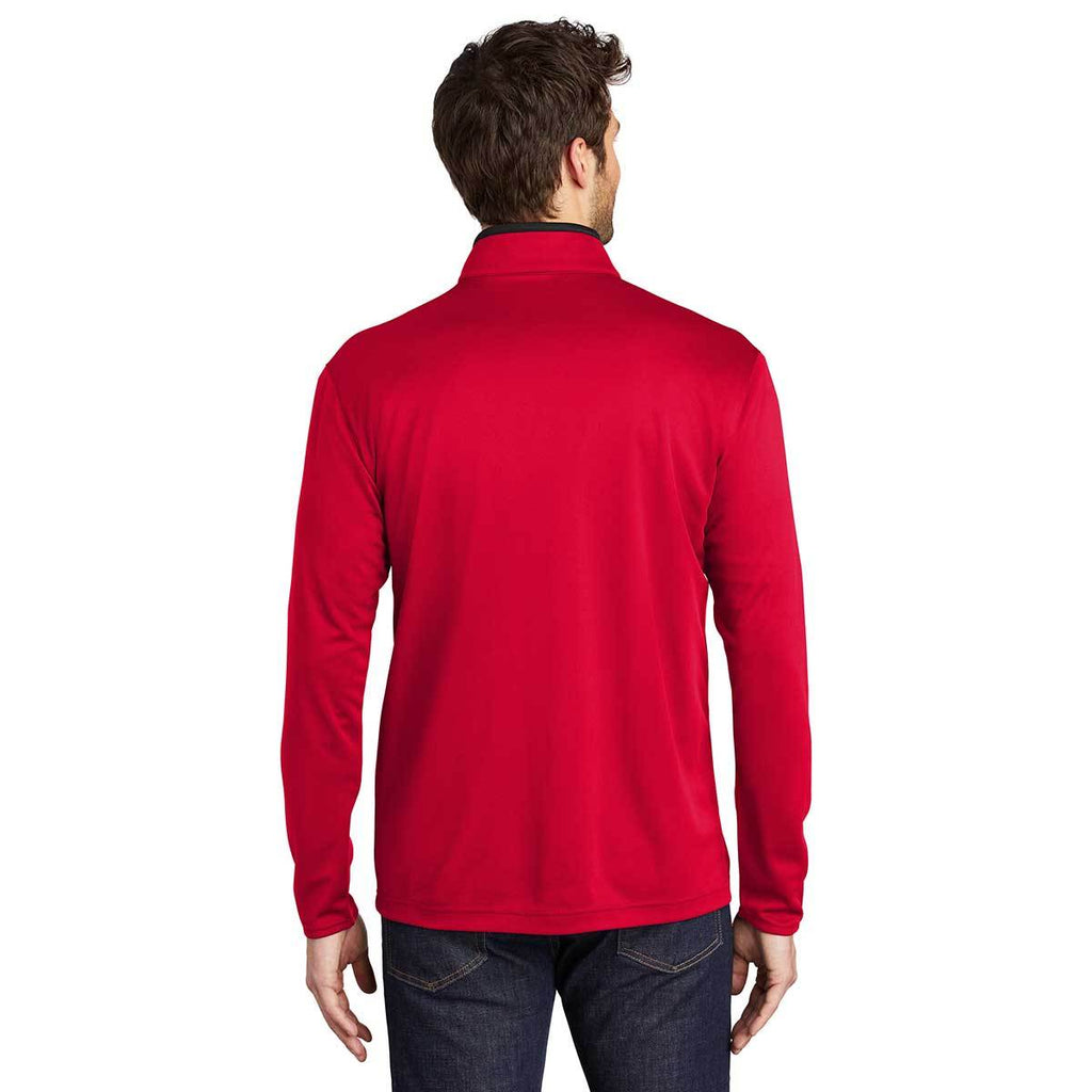 The look of silk and the warmth of performance Quarter zip come together in the Port Authority Men's Red/Black Silk Touch Performance Quarter Zip. Made of 100% polyester, this custom embroidered is lightweight, perfect as a warm up option for team events. Add a custom logo and offer these tag free Quarter zips as end of the year gifts or incentives for meeting sales goals. Complete with binding at the cuffs, cadet collar, and contrast inner collar and binding, these are perfect for a morning run, a trip to the park, or just hanging out with friends.Corresponding Women's Style:Port Authority Women's Red/ Black Silk Touch Performance Quarter Zip