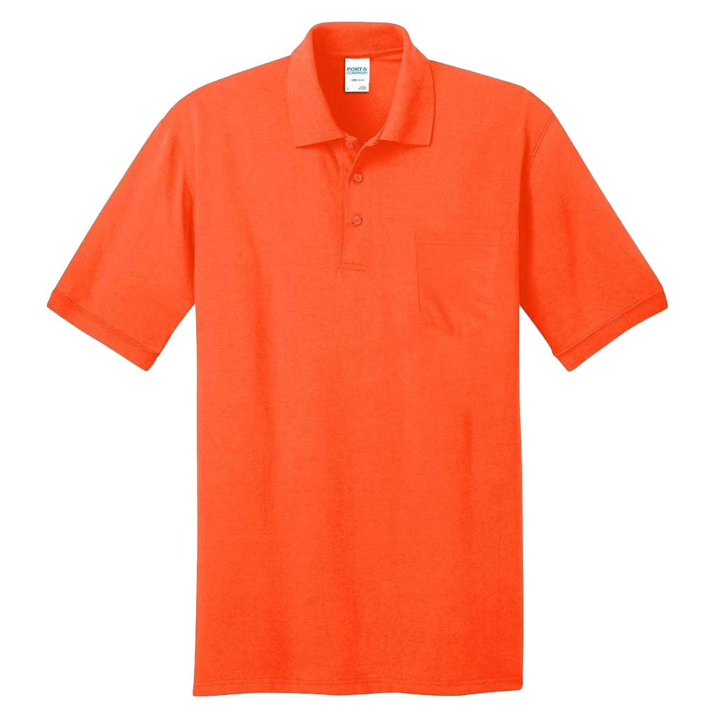 Inspired by minimalist architecture, this Port & Company Men's Safety Orange Core Blend Jersey Knit Pocket Polo is a great answer to warm-weather uniforming shirts. It boasts a lightweight and comfortable construction with a balanced cotton-polyester blend. A pocket adds character to this casual polo while a 3-button placket ensures comfort fit. It can be easily paired with contrasting chinos, cargoes or denim for an effortless look and style. Double-needle stitching hem means durability. Spruce up your company's professionalism by having your logo on this polo that lets individuals know who to contact if they're interested in reaching out to your business.Highlights