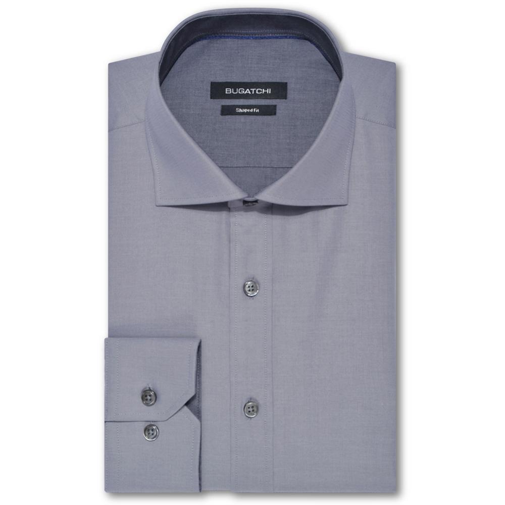 Bugatchi Men's Platinum Spread Collar Regular Placket No Pocket Long Sleeve Shaped Fit