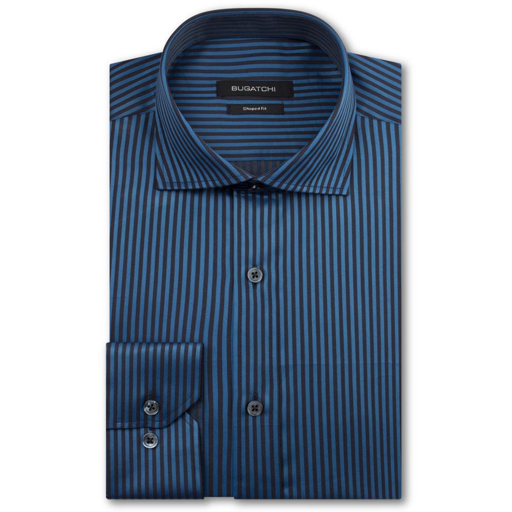 Bugatchi Men's Pinstripe Air Blue Spread Collar Regular Placket No Pocket Long Sleeve Shaped Fit