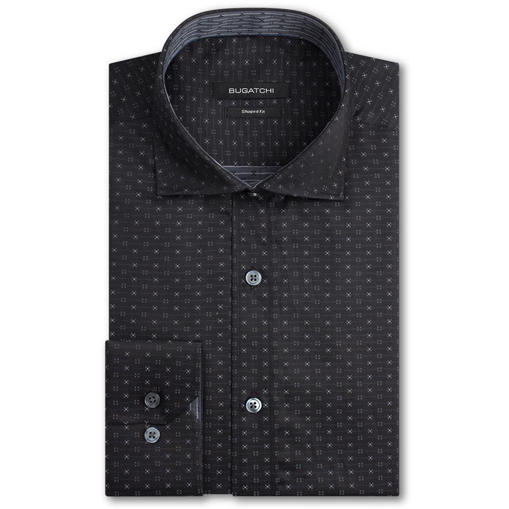 Bugatchi Men's Square Charcoal Spread Collar Regular Placket No Pocket Long Sleeve Shaped Fit