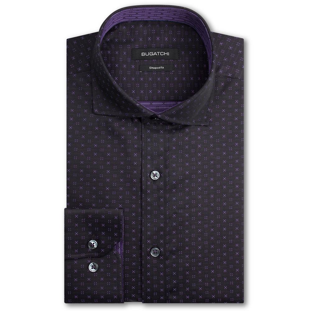 Bugatchi Men's Square Plum Spread Collar Regular Placket No Pocket Long Sleeve Shaped Fit