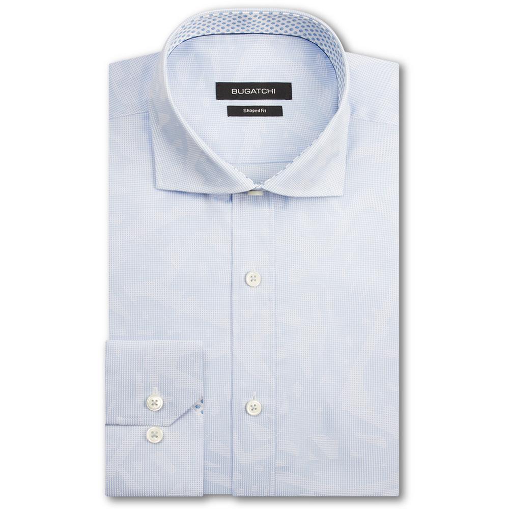 Bugatchi Men's Square Light Sky Spread Collar Regular Placket No Pocket Long Sleeve Shaped Fit