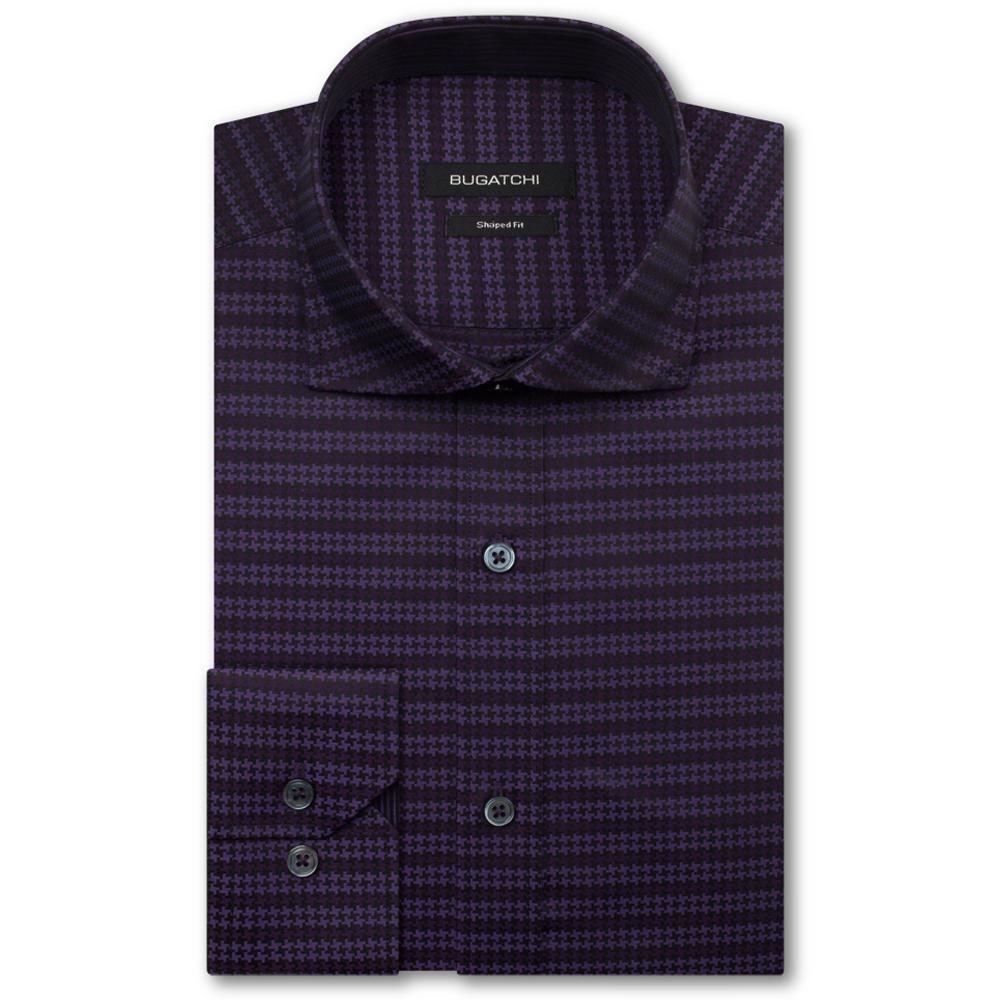 Bugatchi Men's Dark Plum Spread Collar Regular Placket No Pocket Long Sleeve Shaped Fit
