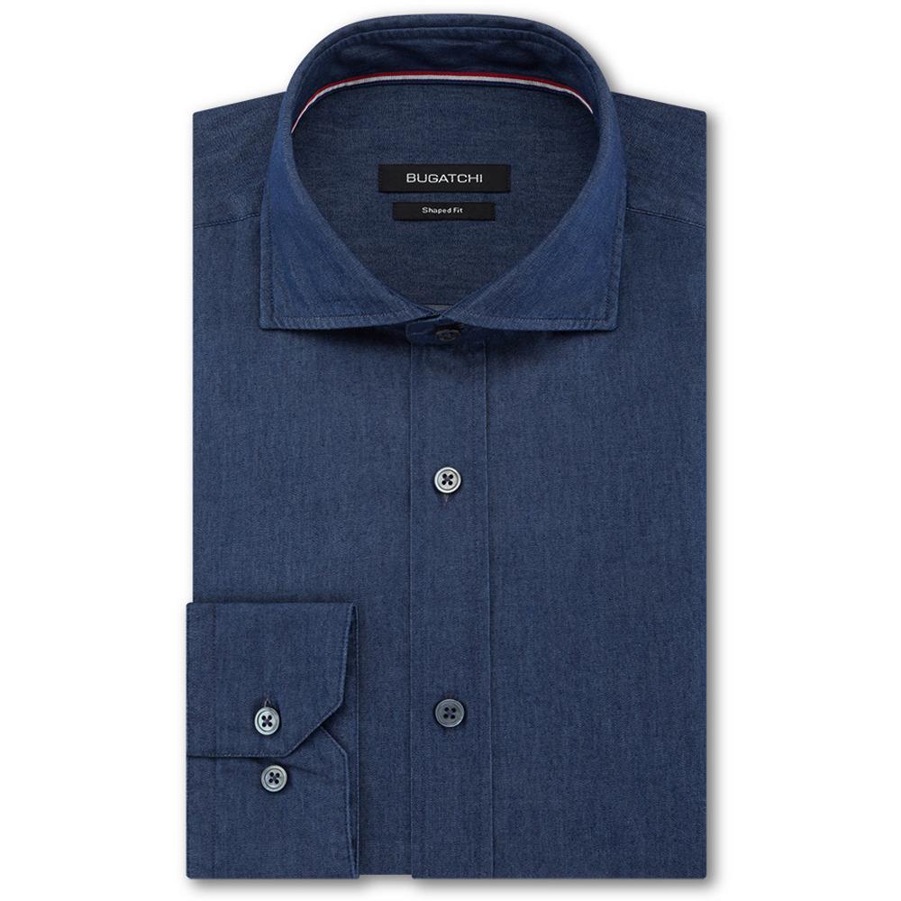 Bugatchi Men's Denim Indigo Spread Collar Regular Placket No Pocket Long Sleeve Shaped Fit