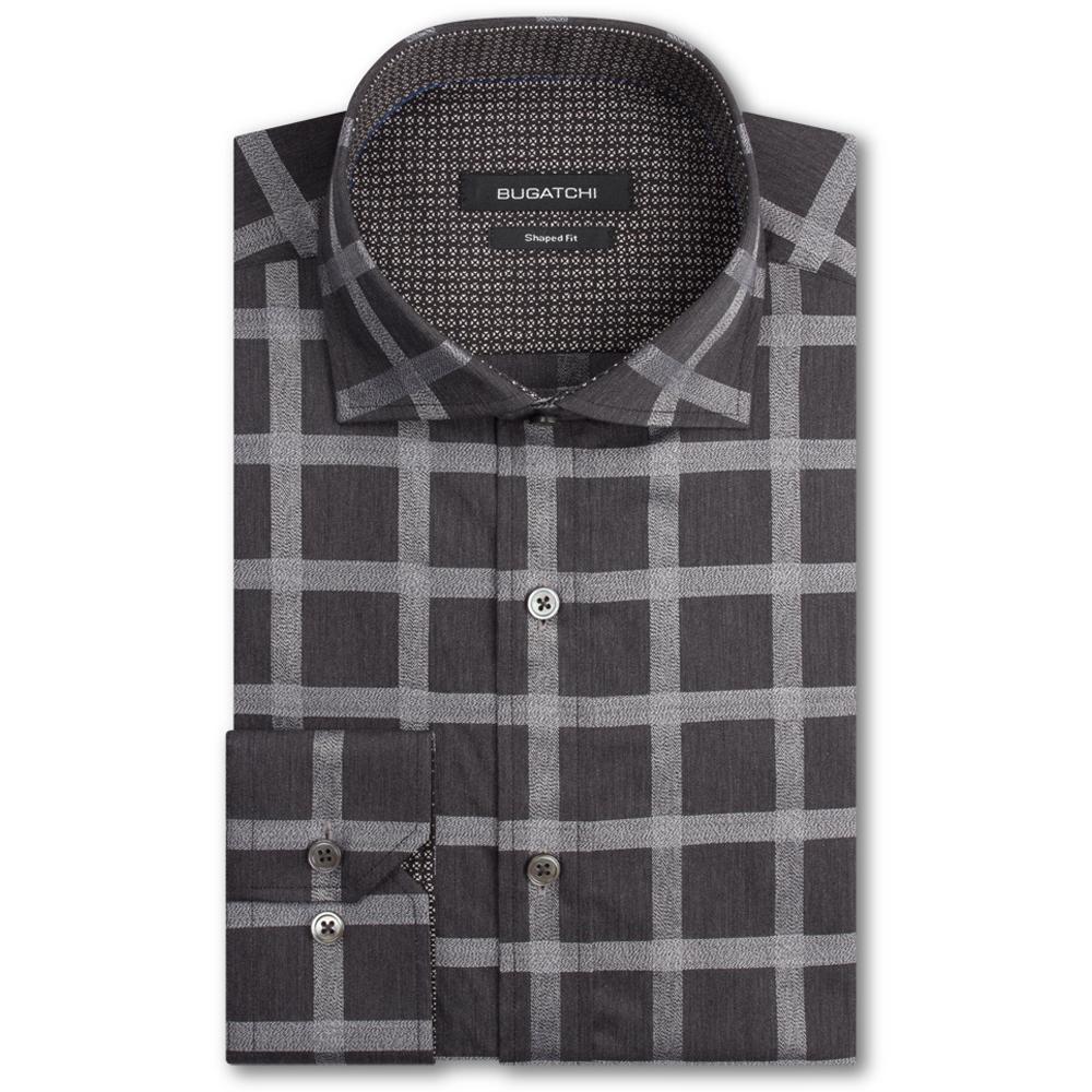 Bugatchi Men's Graphite Spread Collar Regular Placket No Pocket Long Sleeve Classic Fit