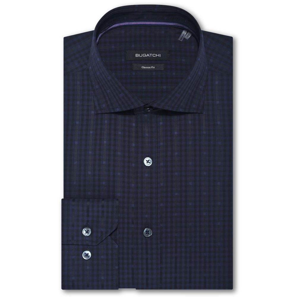 Bugatchi Men's Dark Midnight Spread Collar Regular Placket No Pocket Long Sleeve Classic Fit