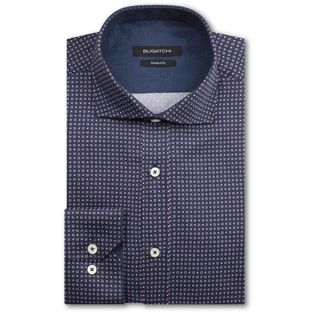 Bugatchi Men's Square Midnight Spread Collar Regular Placket No Pocket Long Sleeve Classic Fit