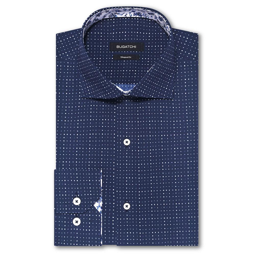 Nothing goes perfectly than a corporate logoed Bugatchi Men's Midnight Long Sleeve Spread Collar Regular Placket No Pocket Shaped Fit shirt at a formal event. If you're finding it difficult to decide on corporate apparel to wear at a formal event, keep in mind that the simpler attire you wear, the more appealing you'll look. There is no doubt that you'll want to stand out among your colleagues and delegates. So, whether you have to attend a formal meeting or a corporate dinner, this lightly square patterned shirt is the perfect fit for you! Made with 100% cotton fabric material and a regular placket, this shirt ensures to enhance your appearance as well as your personality.Highlights