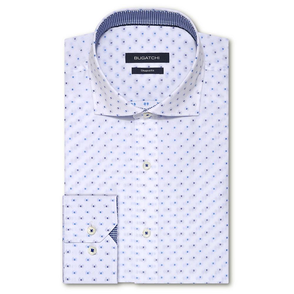 Nothing goes perfectly than a corporate logoed Bugatchi Men's Square Classic Blue Long Sleeve Spread Collar Regular Placket No Pocket Shaped Fit shirt at a formal event. If you're finding it difficult to decide on corporate apparel to wear at a formal event, keep in mind that the simpler attire you wear, the more appealing you'll look. There is no doubt that you'll want to stand out among your colleagues and delegates. So, whether you have to attend a formal meeting or a corporate dinner, this lightly square patterned shirt is the perfect fit for you! Made with 100% cotton fabric material and a regular placket, this shirt ensures to enhance your appearance as well as your personality.Highlights