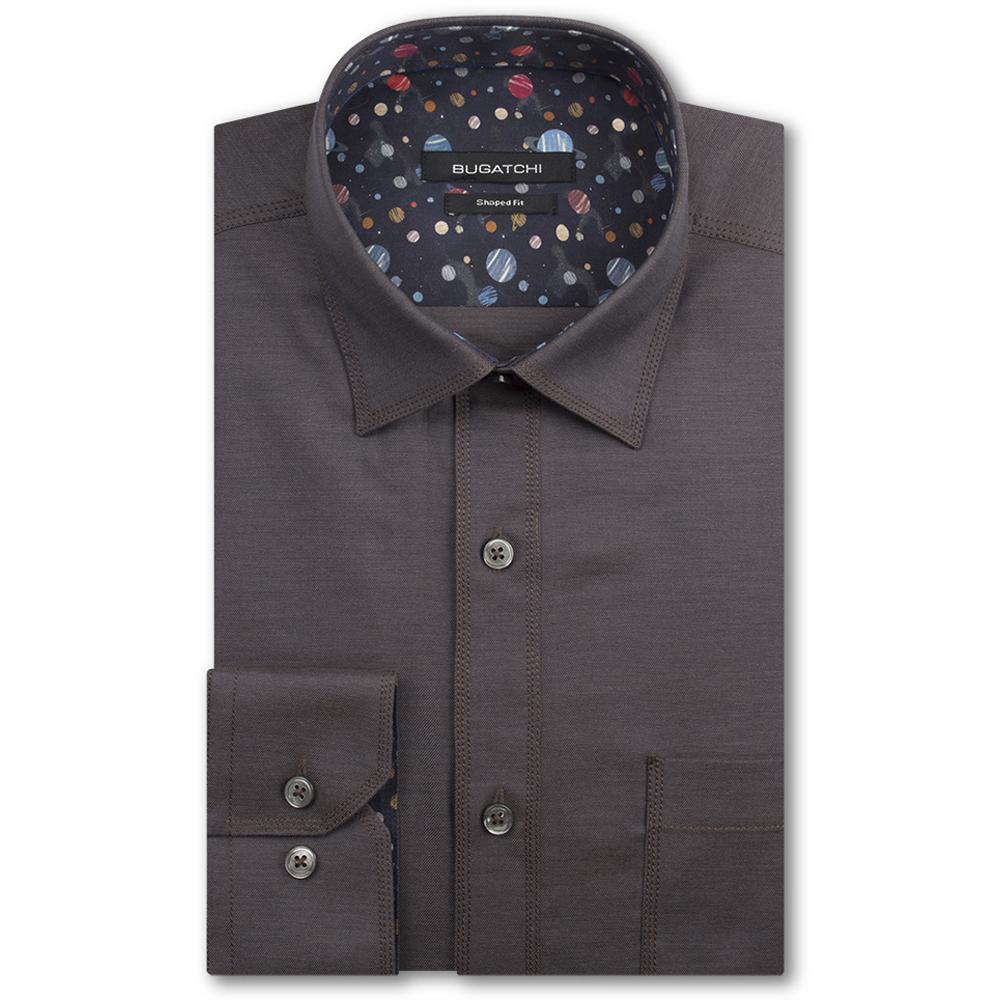 Bugatchi Men's Chocolate Point Collar Regular Placket One Pocket Long Sleeve Classic Fit
