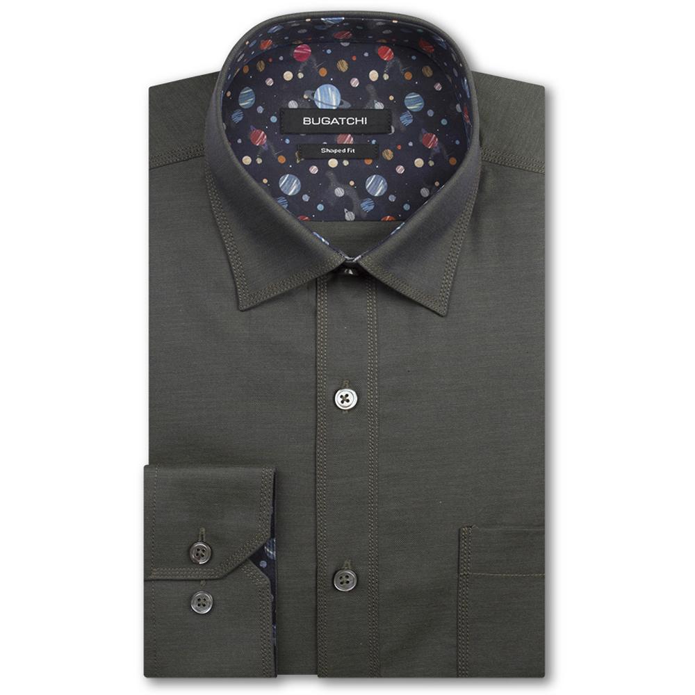 Bugatchi Men's Forest Point Collar Regular Placket One Pocket Long Sleeve Classic Fit
