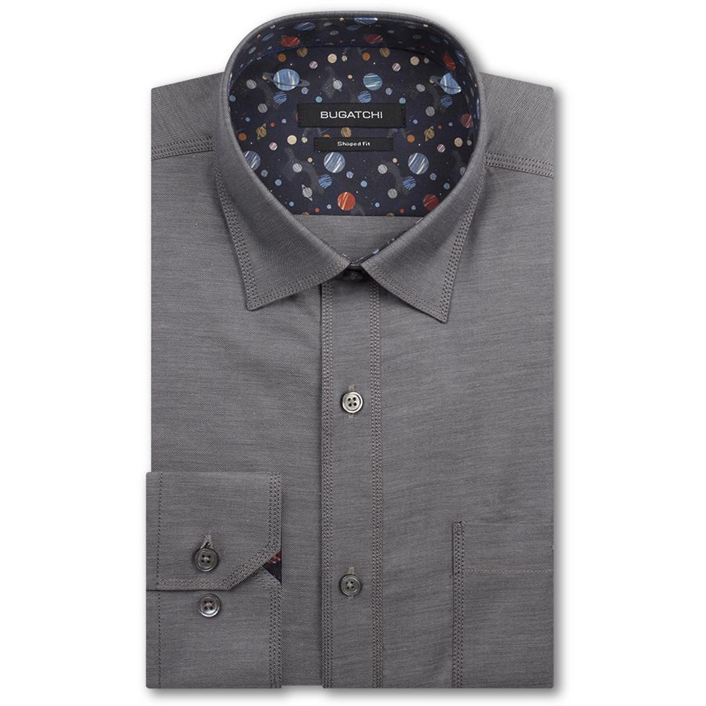 Bugatchi Men's Platinum Point Collar Regular Placket One Pocket Long Sleeve Classic Fit