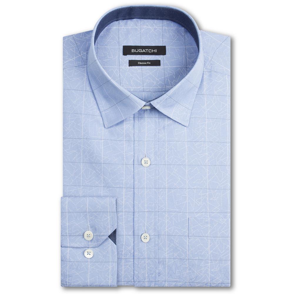 Bugatchi Men's Sky Point Collar Regular Placket One Pocket Long Sleeve Classic Fit