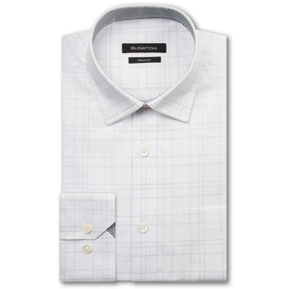 Bugatchi Men's Snow Point Collar Regular Placket One Pocket Long Sleeve Classic Fit