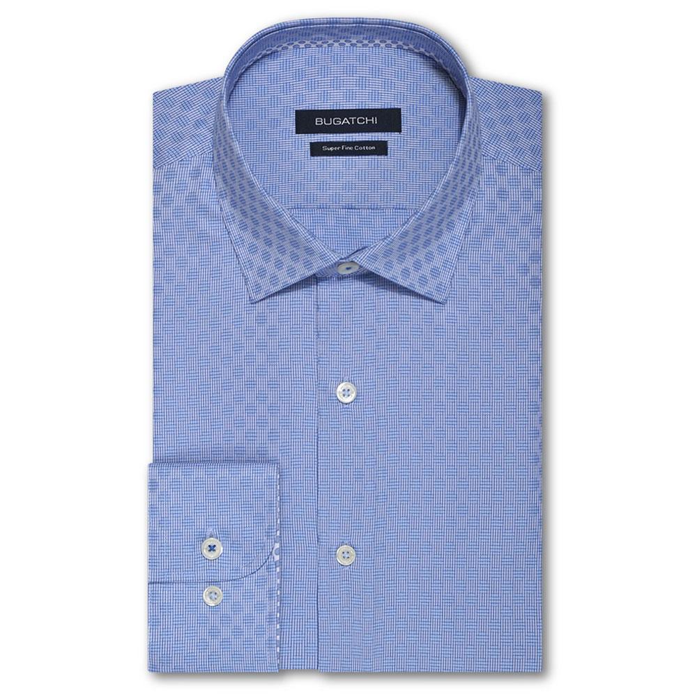 Bugatchi Men's Classic Blue Long Sleeve Point Collar French Placket No Pocket