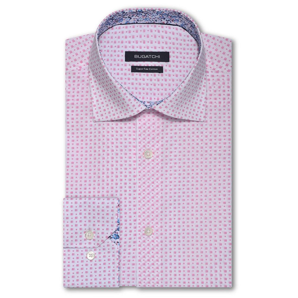 Bugatchi Men's Pink Long Sleeve Point Collar French Placket No Pocket