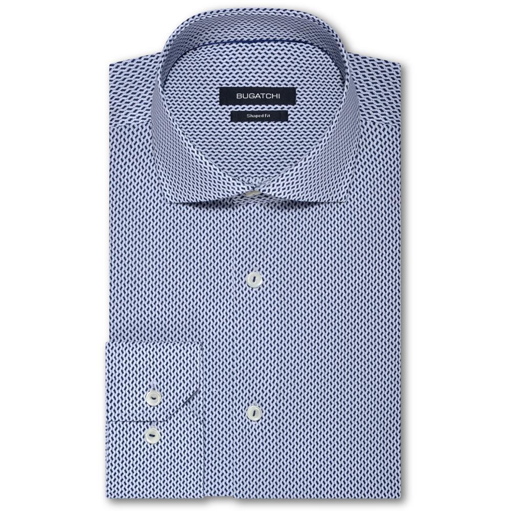 Bugatchi Men's Zig-Zag Navy Spread Collar French Placket No Pocket Long Sleeve Shaped Fit