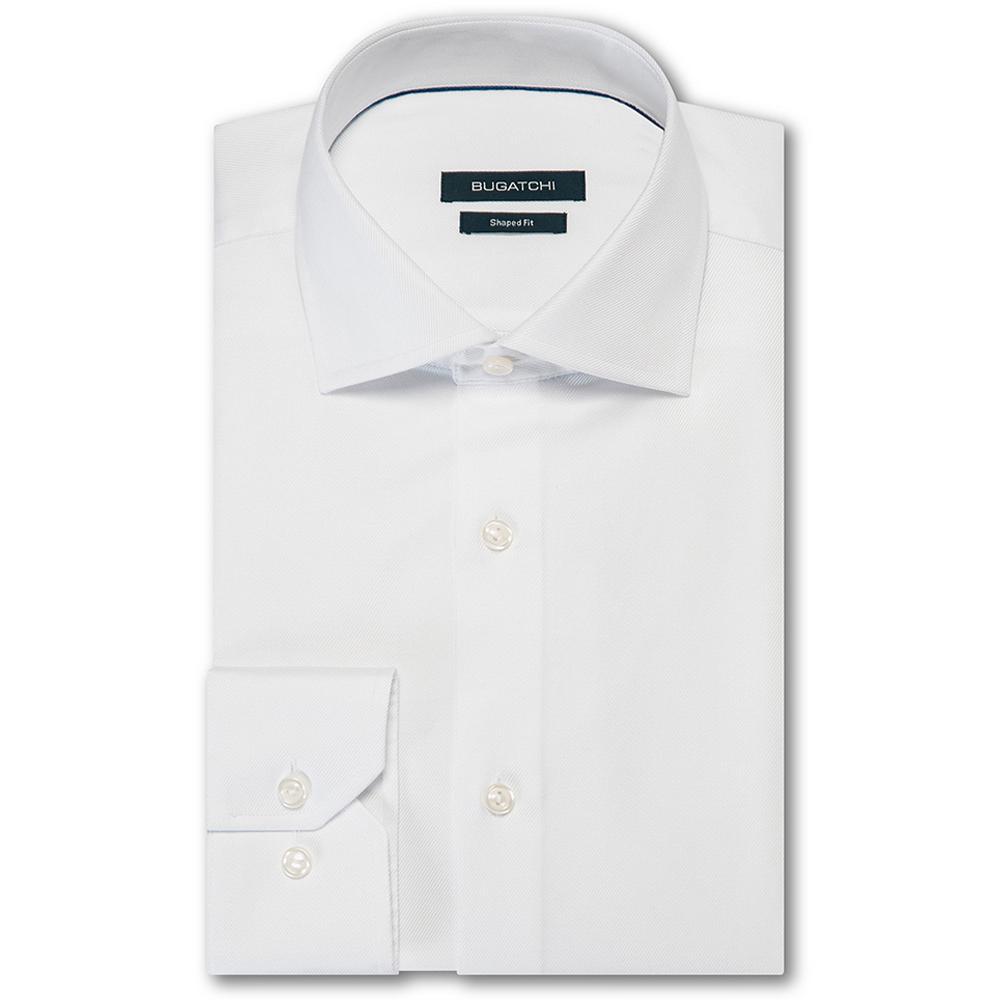 Bugatchi Men's White Point Collar French Placket No Pocket Long Sleeve Shaped Fit