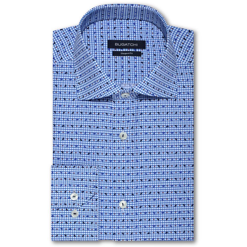 Bugatchi Men's Bird Classic Blue Spread Collar French Placket No Pocket Long Sleeve Shaped Fit