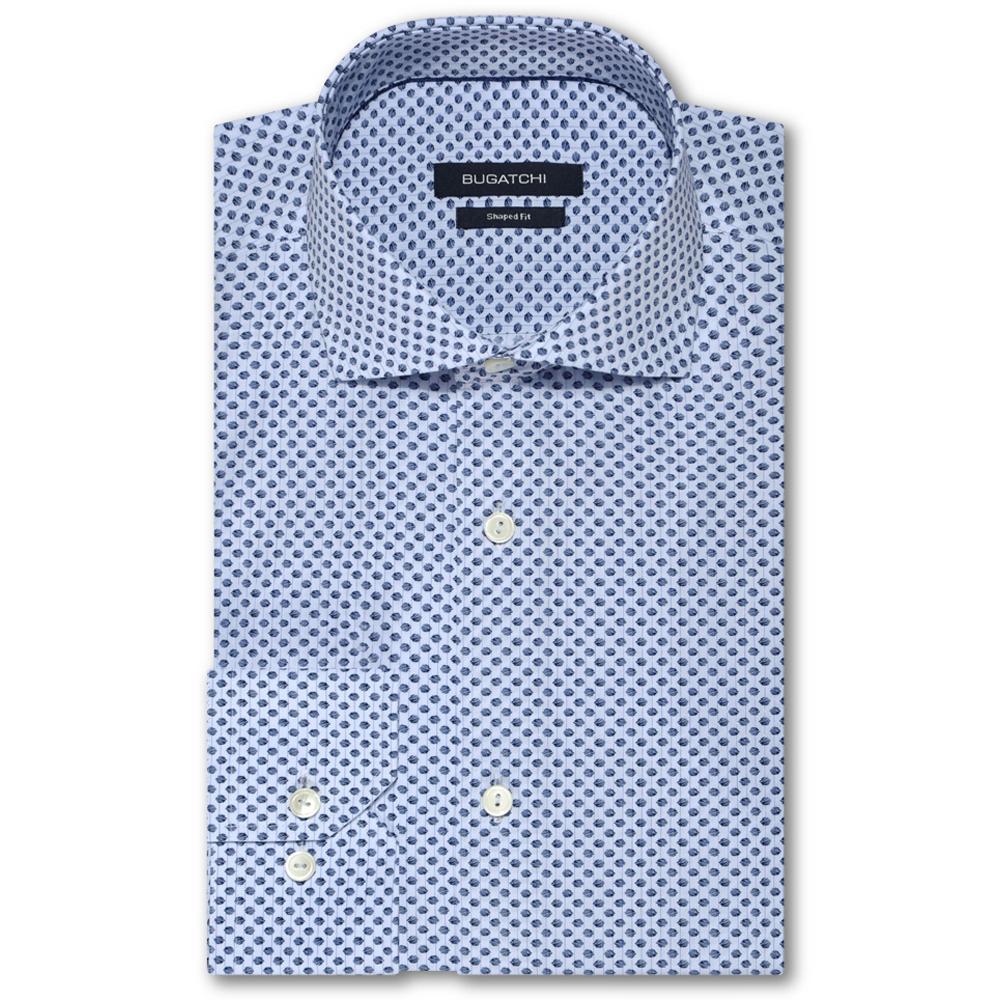Bugatchi Men's Ice Blue Spread Collar French Placket No Pocket Long Sleeve Shaped Fit