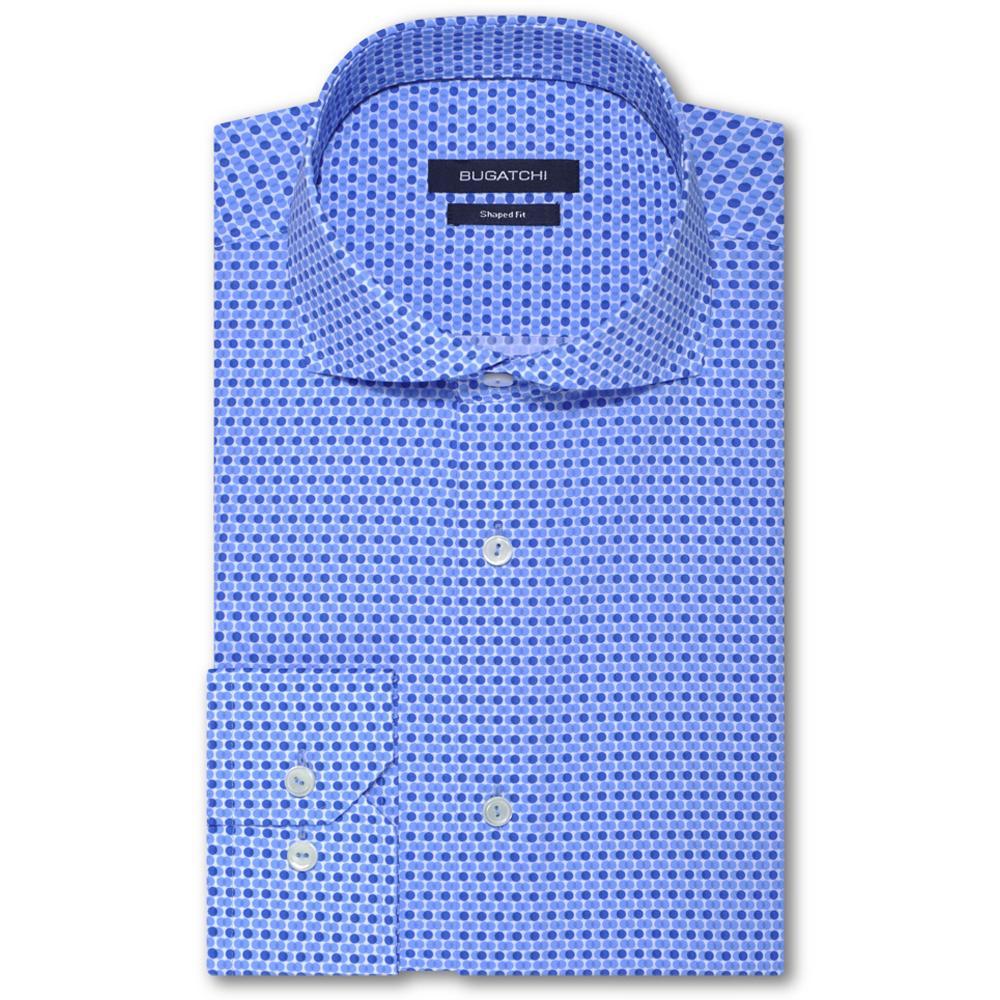 Bugatchi Men's Classic Blue Spread Collar French Placket No Pocket Long Sleeve Shaped Fit