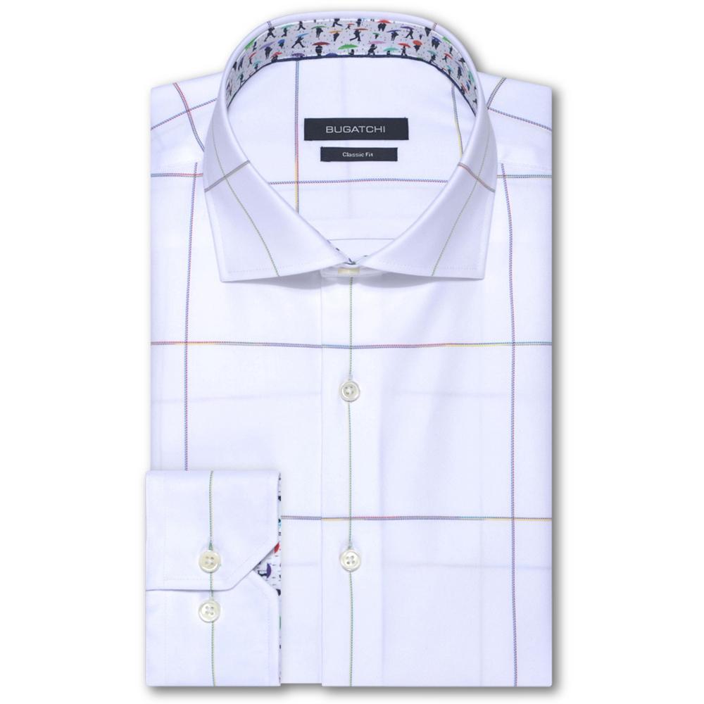 Bugatchi Men's White Spread Collar French Placket No Pocket Long Sleeve Shaped Fit