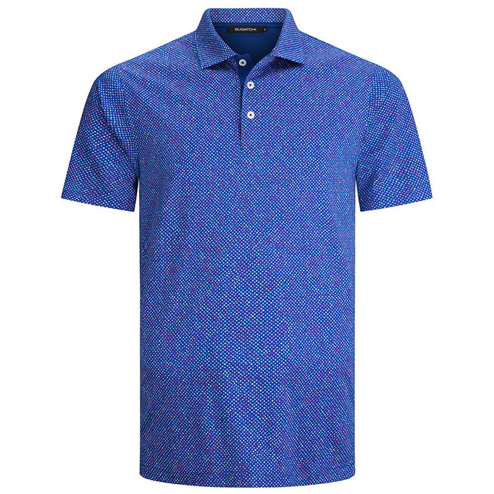 Create your custom look with the Bugatchi Men's Night Blue Short Sleeve Three Button Self Collar. A unique look for corporate apparel, add your custom logo to use as a daily office wear or to show off on the golf course. The interesting print will draw the eye of all who see which means this short sleeve shirt could serve as employee apparel with a corporate logo if needed. Offer these embroidered button collar shirts as gifts for the holidays or next big event. No matter your need, these shirts will work to show off both your company and your brand with a logo designed by you. Place your order today.Highlights