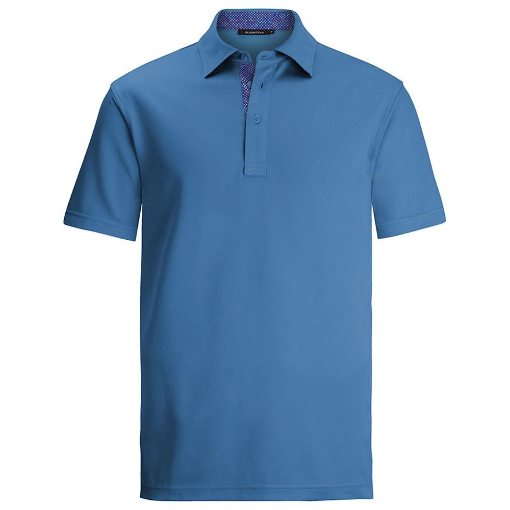 Create a custom embroidery Bugatchi Men's Classic Blue Short Sleeve Three Button Polo Collar that is ideal as a gift or employee apparel. Simple enough to carry your custom logo with pride, yet luxurious enough to be used as corporate apparel. Allowing for a wide range of movement on the golf course or diverse enough to carry your custom logo and be used as high end gifts. The three button collar offers the classic look of a polo that will seamlessly fit into your wardrobe no matter your form of employment. Place an order for a few or a large amount to use for your purposes.Highlights