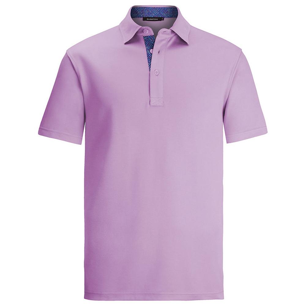 Create a custom embroidery Bugatchi Men's Lavender Short Sleeve Three Button Polo Collar that is ideal as a gift or employee apparel. Simple enough to carry your custom logo with pride, yet luxurious enough to be used as corporate apparel. Allowing for a wide range of movement on the golf course or diverse enough to carry your custom logo and be used as high end gifts. The three button collar offers the classic look of a polo that will seamlessly fit into your wardrobe no matter your form of employment. Place an order for a few or a large amount to use for your purposes.Highlights