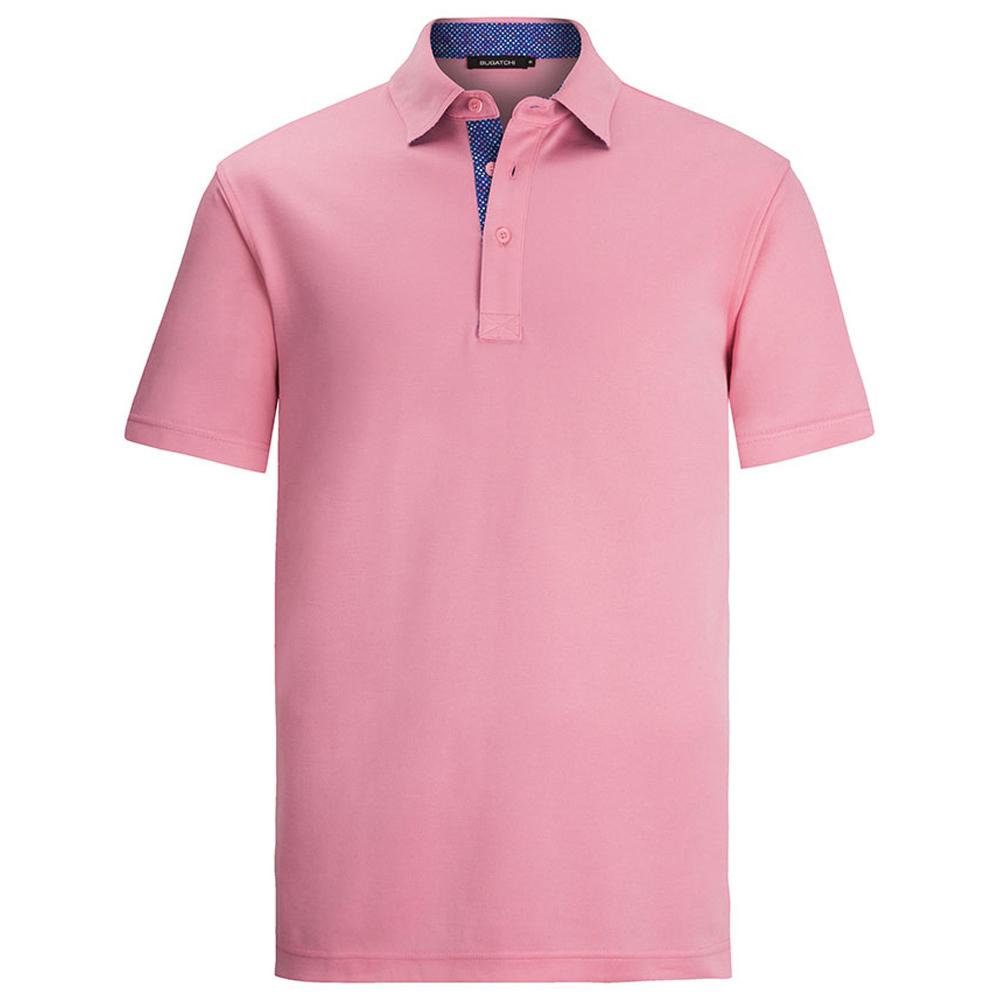 Create a custom embroidery Bugatchi Men's Pink Short Sleeve Three Button Polo Collar that is ideal as a gift or employee apparel. Simple enough to carry your custom logo with pride, yet luxurious enough to be used as corporate apparel. Allowing for a wide range of movement on the golf course or diverse enough to carry your custom logo and be used as high end gifts. The three button collar offers the classic look of a polo that will seamlessly fit into your wardrobe no matter your form of employment. Place an order for a few or a large amount to use for your purposes.Highlights